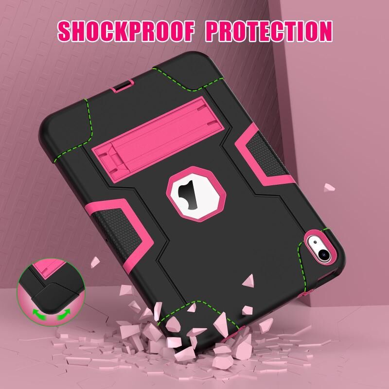 For iPad 2025 / 2022 Contrast Color Silicone + PC Tablet Case with Holder(Black Rose Red)
