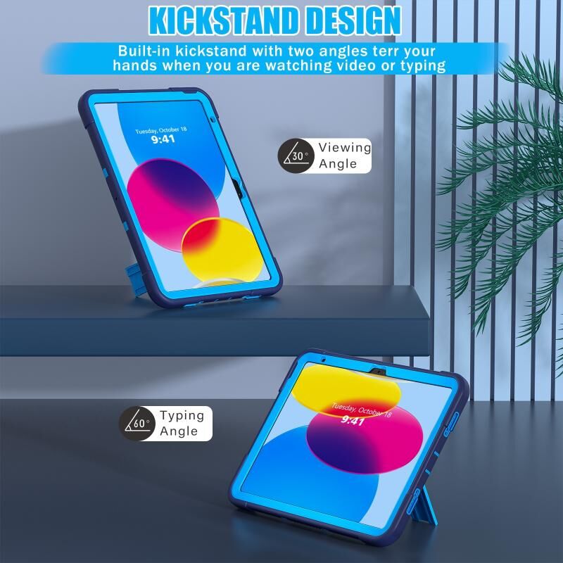 For iPad 2025 / 2022 Contrast Color Silicone + PC Tablet Case with Holder(Navy Blue)