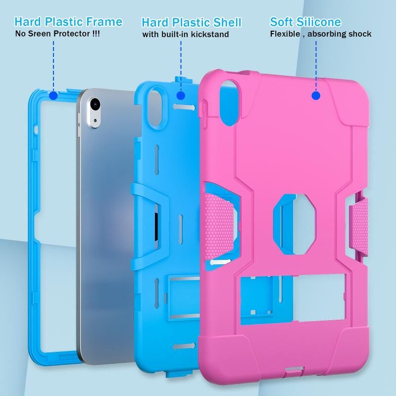 For iPad 2025 / 2022 Contrast Color Silicone + PC Tablet Case with Holder(Rose Red Blue)