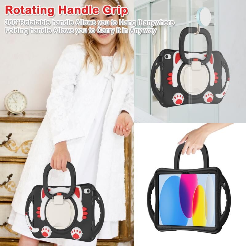 For iPad 2025 / 2022 Cute Cat King Kids Shockproof Silicone Tablet Case(Black Red)