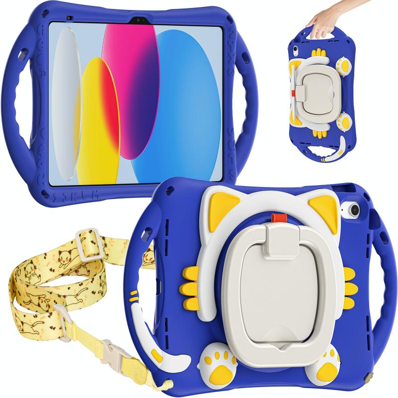 For iPad 2025 / 2022 Cute Cat King Kids Shockproof Silicone Tablet Case(Dark Blue)
