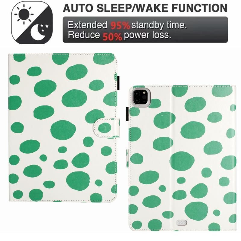 For iPad 2025 / 2022 Dot Pattern Leather Smart Tablet Case(White Green Dot)