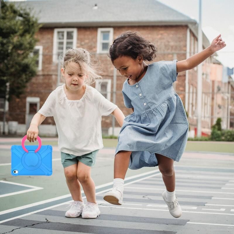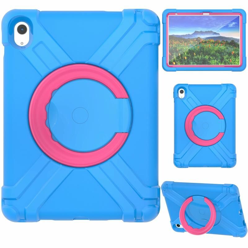 For iPad 2025 / 2022 EVA + PC Tablet Protective Case with 360 Rotating Bracket(Blue+Rose Red)