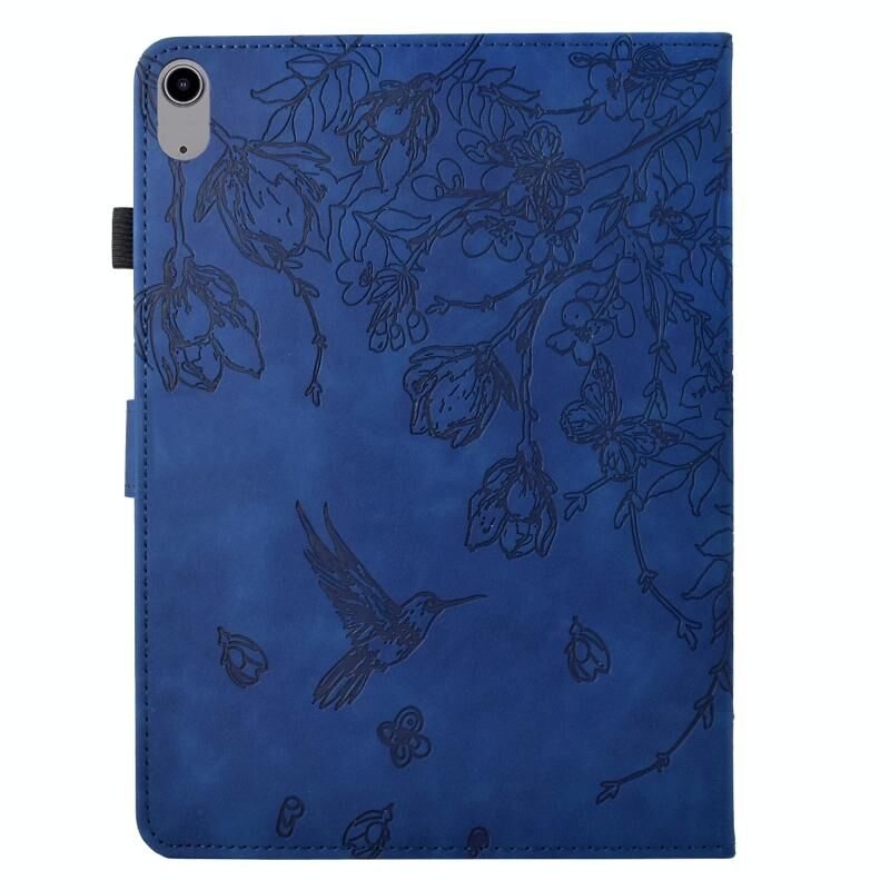 For iPad 2025 / 2022 Flowers and Bird Embossed Smart Leather Tablet Case(Dark Blue)