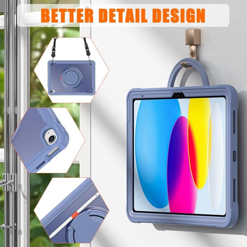 For iPad 2025 / 2022 Heavy Duty Hybrid Tablet Case with Handle & Strap(Lavender Grey)