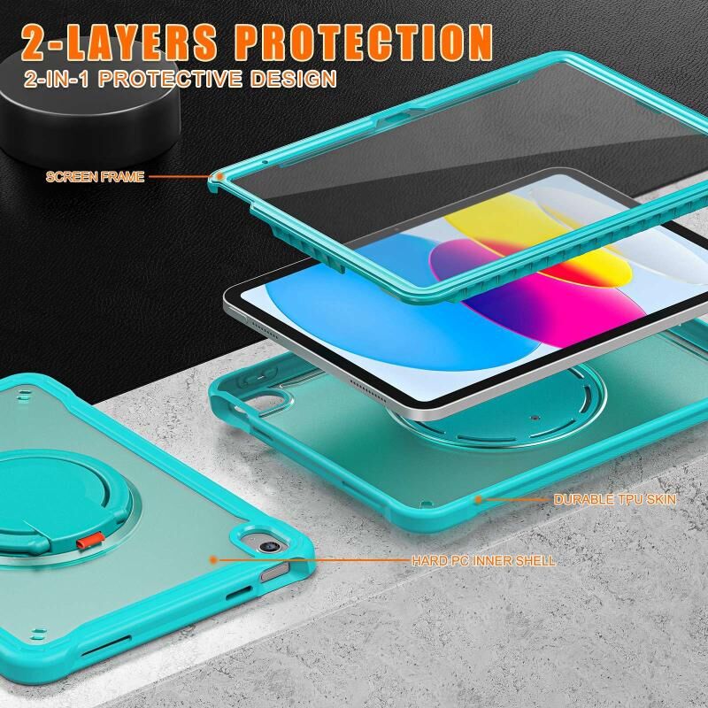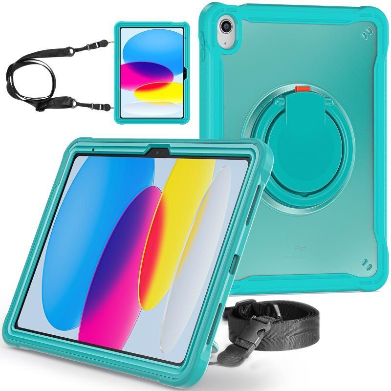 For iPad 2025 / 2022 Heavy Duty Hybrid Tablet Case with Handle & Strap(Light Blue)