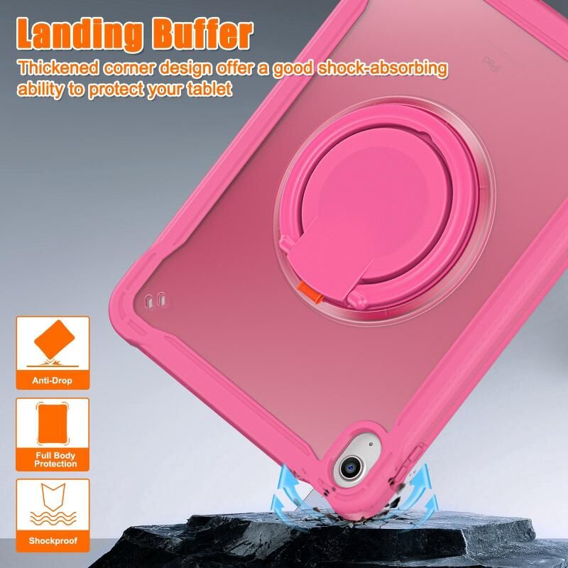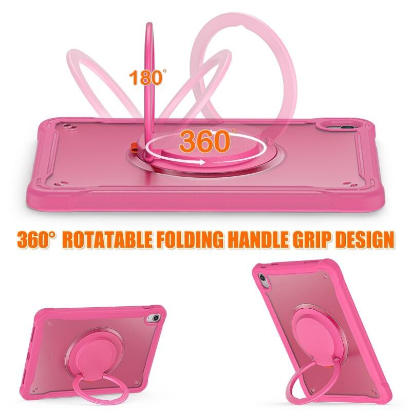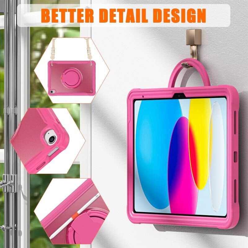 For iPad 2025 / 2022 Heavy Duty Hybrid Tablet Case with Handle & Strap(Rose Red)