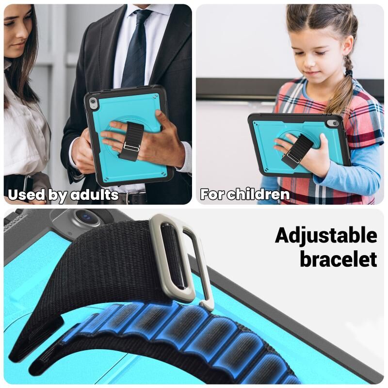 For iPad 2025 / 2022 Honeycomb Hand Grip Turntable Stand Tablet Case(Light Blue)