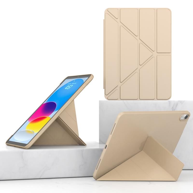 For iPad 2025 / 2022 Multi-folding TPU Leather Smart Tablet Case(Gold)