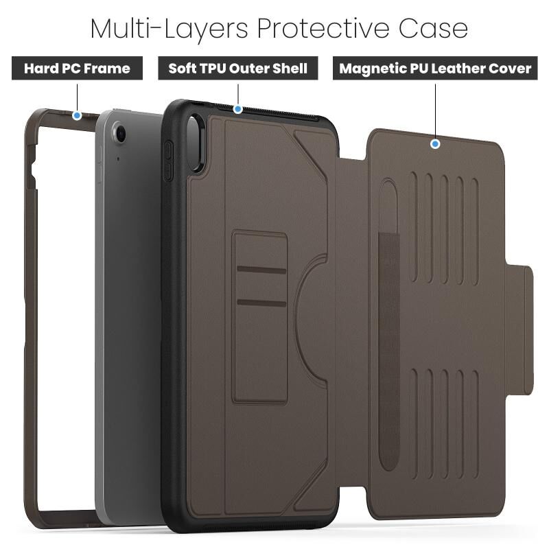 1. Durable Material: Magnetic case made of high quality PC + TPU and premium textured faux leather material, slim and lightweight design with excellent craftsmanship and feel. Prevents the tablet from scratching and bumping, fingerprints and dust. Also easy to clean.