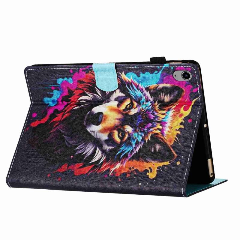 For iPad 2025 / 2022 Painted Pattern Stitching Smart Leather Tablet Case(Colorful Wolf)