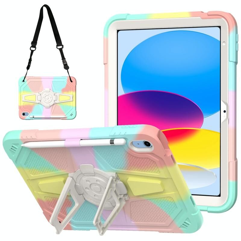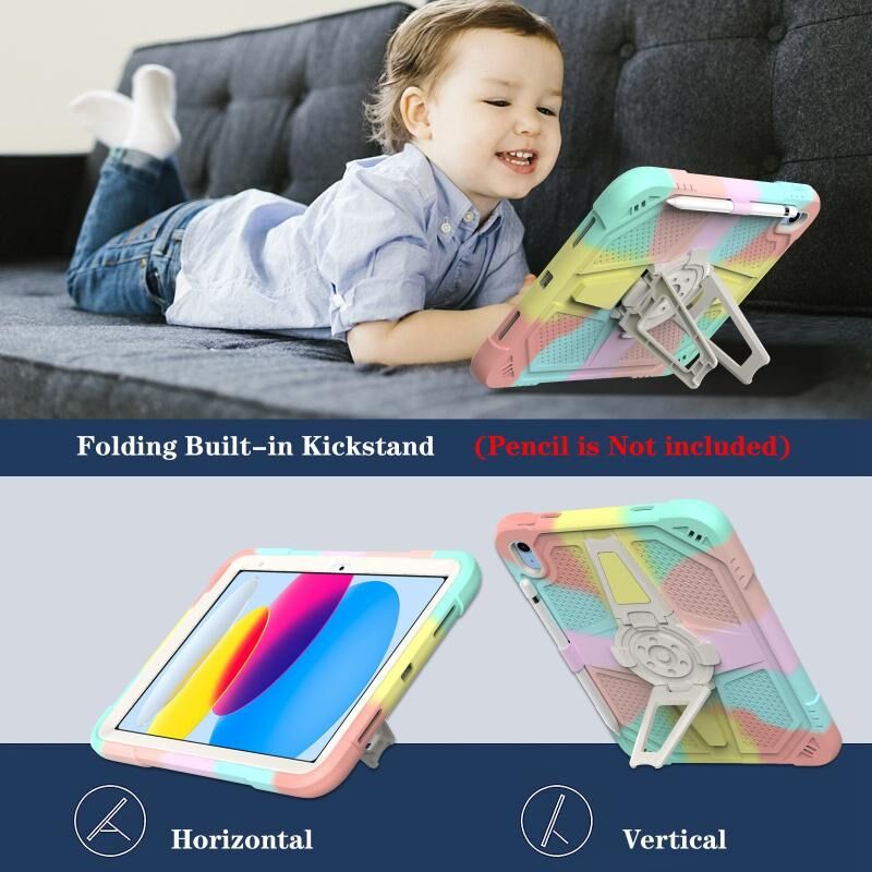 3. Adjustable Shoulder Strap: Adjustable shoulder grip can be slanted and release your hands completely. This function is perfect for traveling, restaurant ordering, home product introduction, engineer outdoor operation, teacher, etc. Also, the strap allows you to hang up your tablet behind car seat for entertainment for kids.