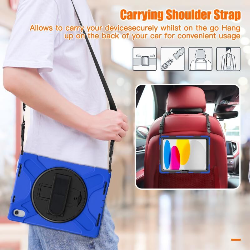 For iPad 2025 / 2022 Rotatable Kickstand Grip Heavy Duty Hard Rugged Tablet Case(Blue)