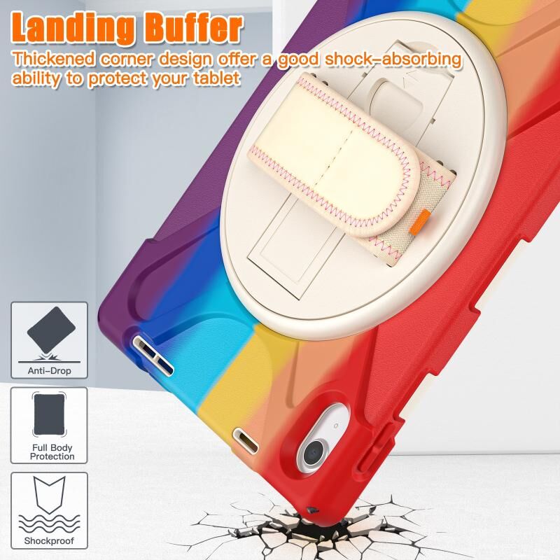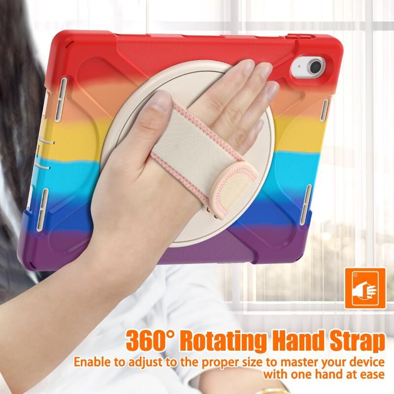 For iPad 2025 / 2022 Rotatable Kickstand Grip Heavy Duty Hard Rugged Tablet Case(Colorful Red)