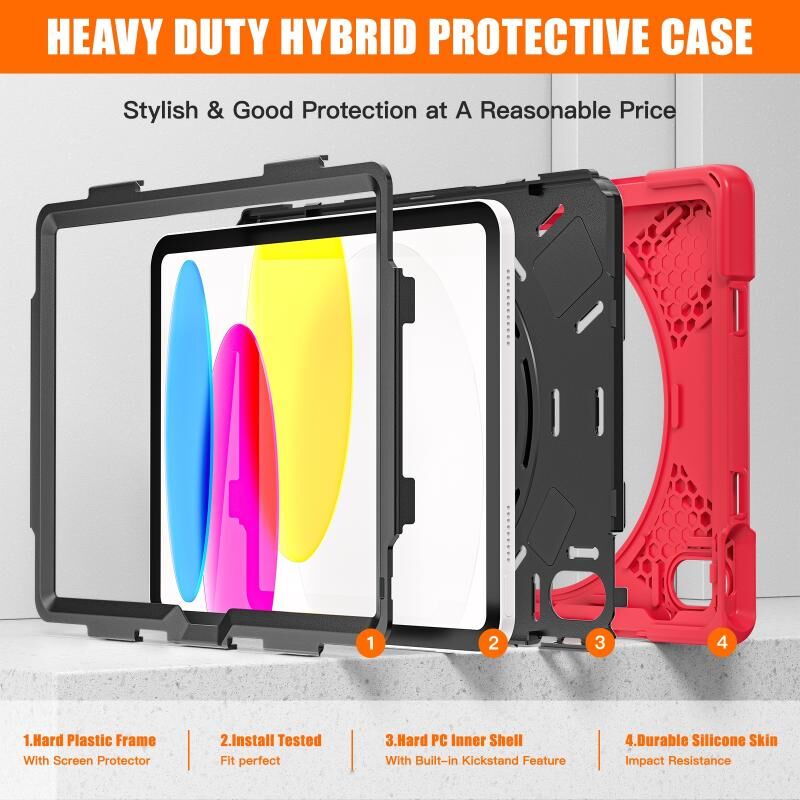 For iPad 2025 / 2022 Rotatable Kickstand Grip Heavy Duty Hard Rugged Tablet Case(Red)