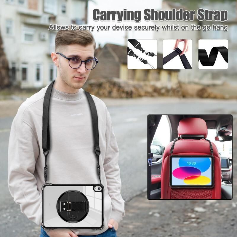 For iPad 2025 / 2022 Rotation Grip Holder TPU Hybrid Clear PC Tablet Case(Black)