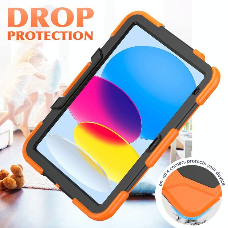 For iPad 2025 / 2022 Rugged Silicone Hard PC Tablet Case with Holder(Orange)