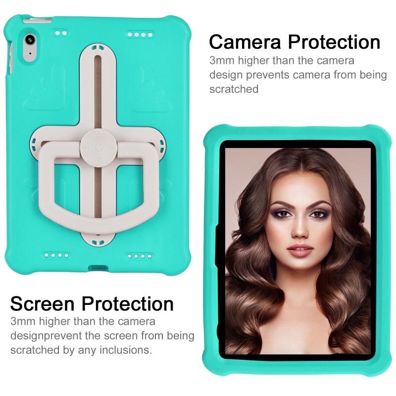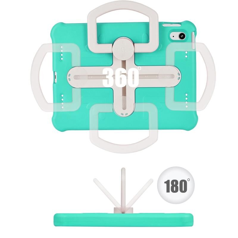 For iPad 2025 / 2022 Shield 360 Rotation Handle EVA Shockproof PC Tablet Case(Mint Green Beige)