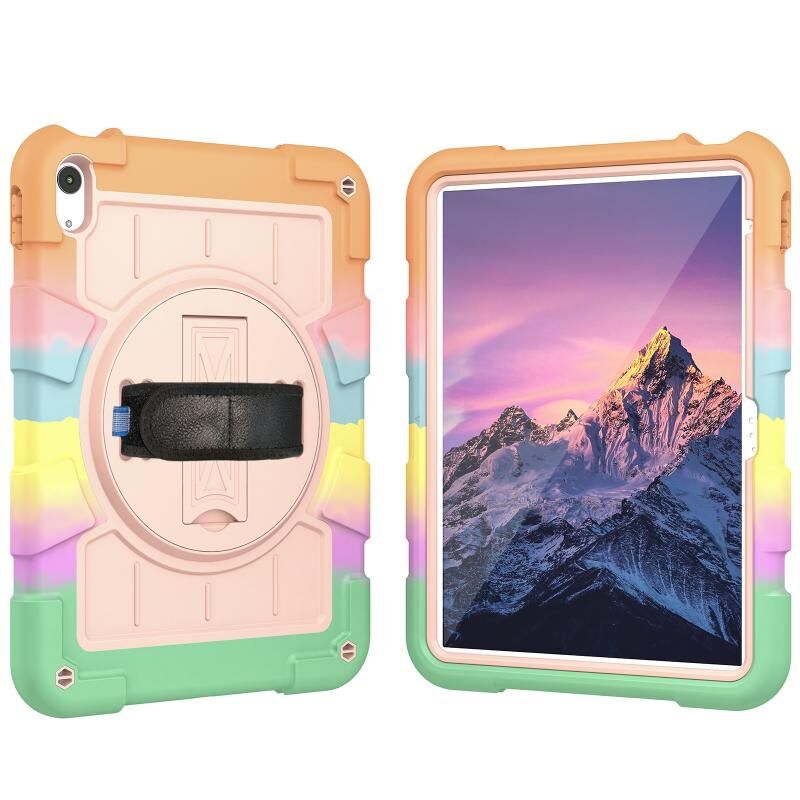 For iPad 2025 / 2022 Silicone Hybrid PC Shockproof Tablet Case with Shoulder Strap(Colorful Gold)