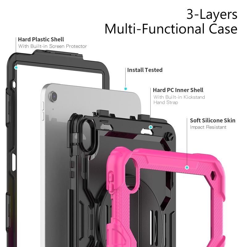 For iPad 2025 / 2022 Silicone + PC Full Body Protection Tablet Case(Black + Rose Red)