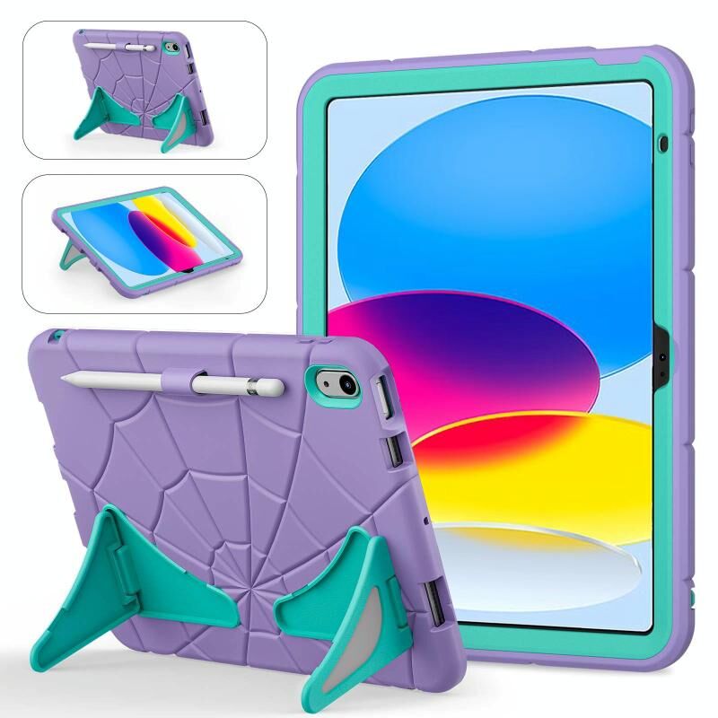 For iPad 2025 / 2022 Silicone + PC Shockproof Protective Tablet Case (Purple + Mint Green)