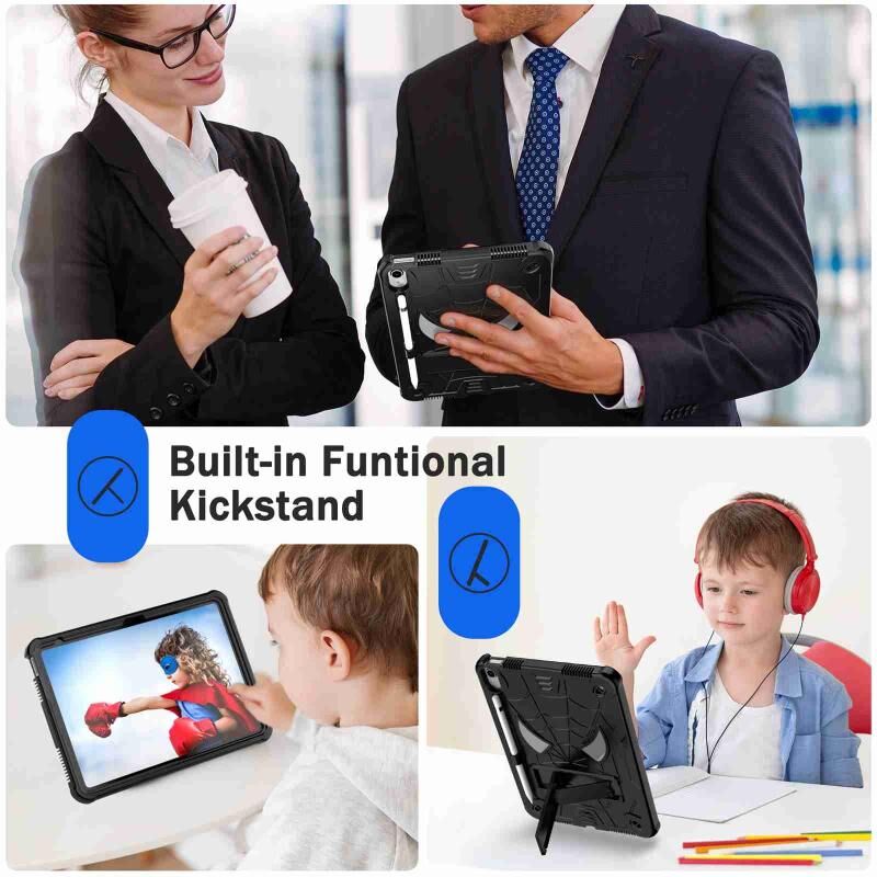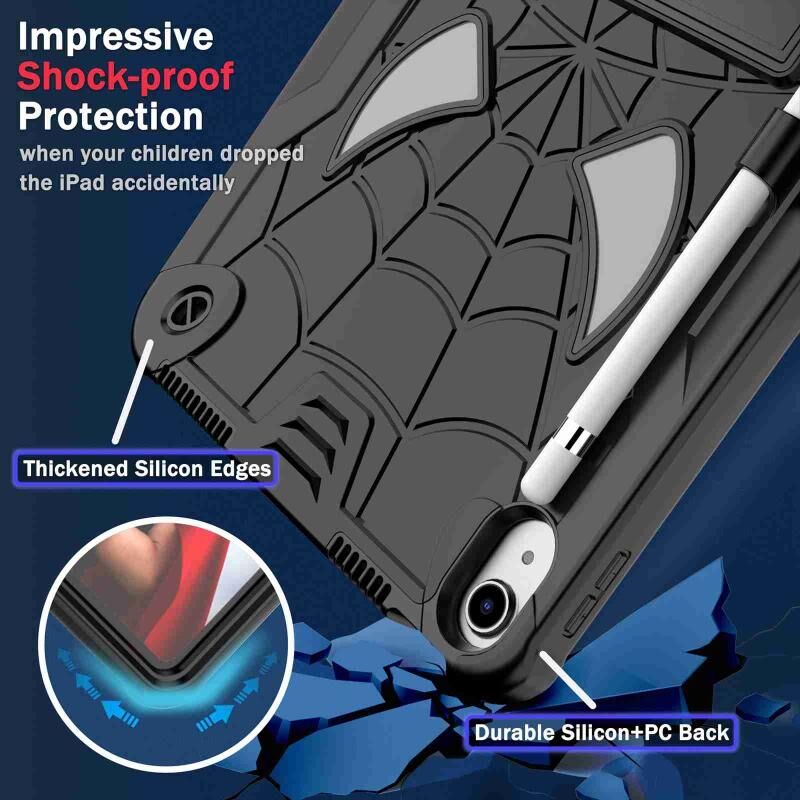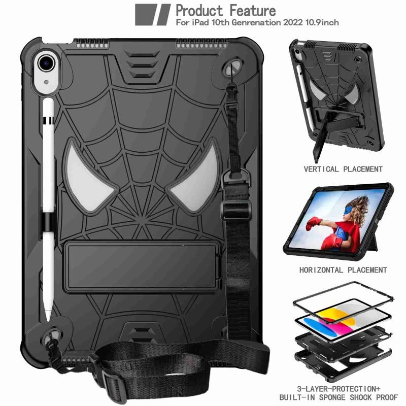For iPad 2025 / 2022 Spider Texture Silicone Hybrid PC Tablet Case with Shoulder Strap(Black)