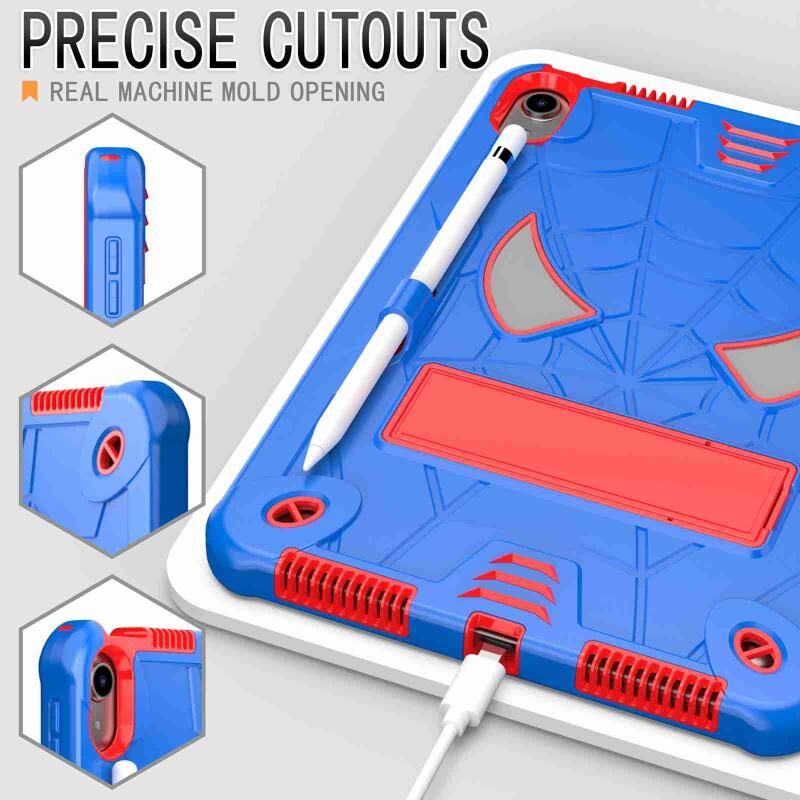 For iPad 2025 / 2022 Spider Texture Silicone Hybrid PC Tablet Case with Shoulder Strap(Blue + Red)