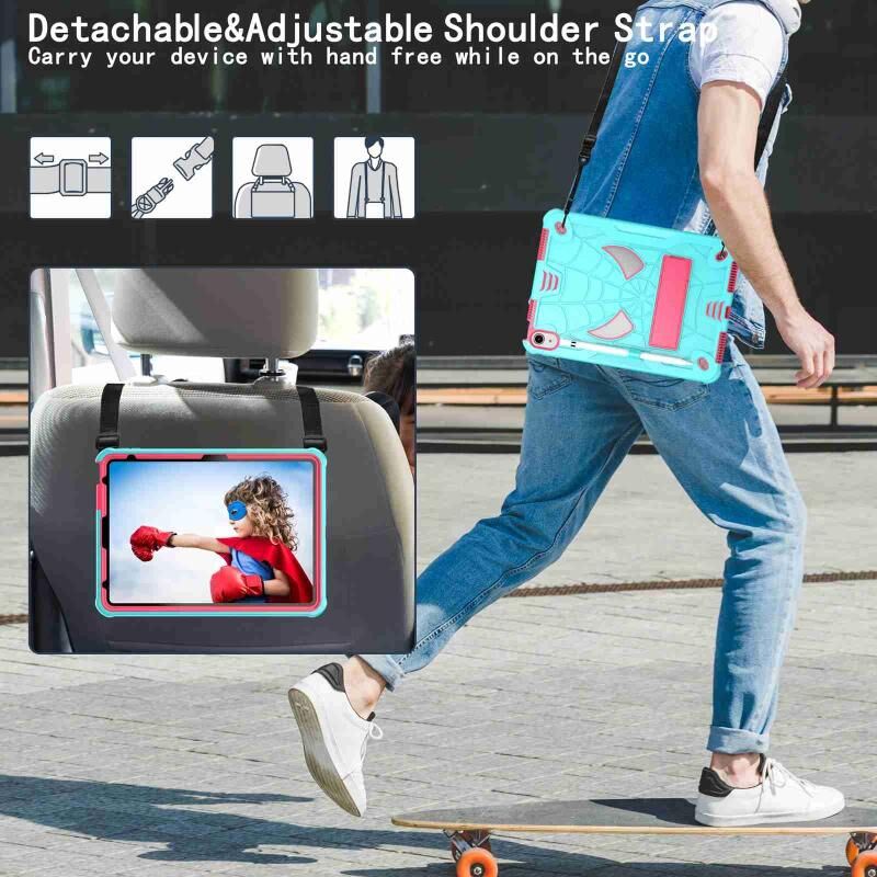 For iPad 2025 / 2022 Spider Texture Silicone Hybrid PC Tablet Case with Shoulder Strap(Mint Green + Rose Red)
