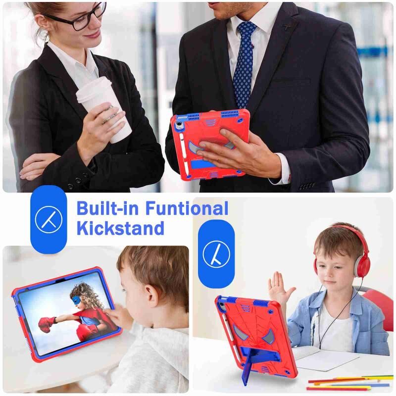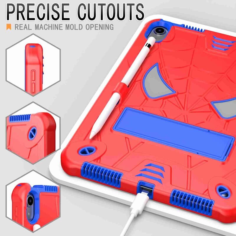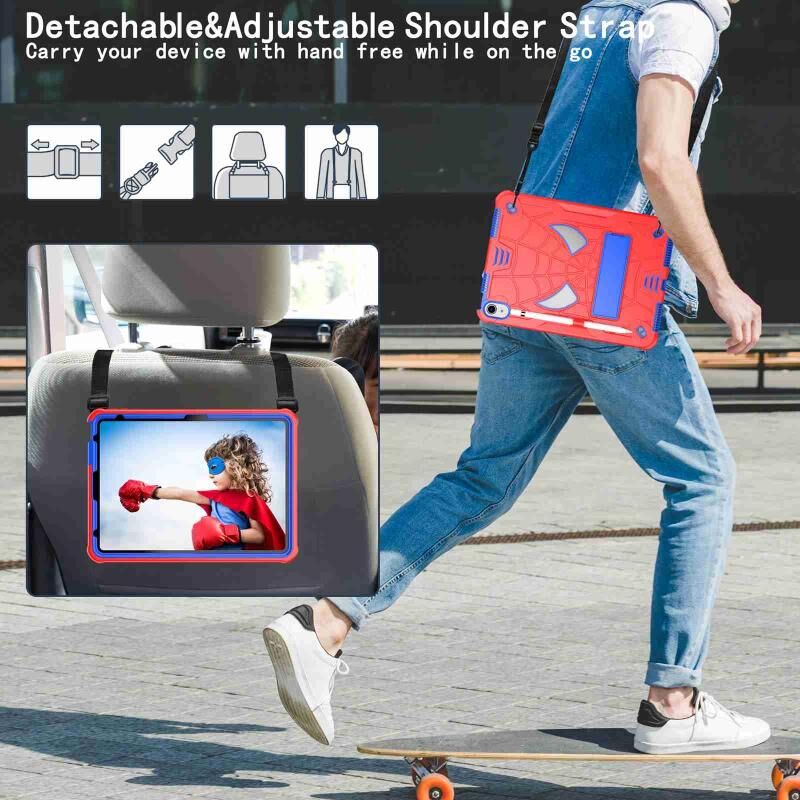 For iPad 2025 / 2022 Spider Texture Silicone Hybrid PC Tablet Case with Shoulder Strap(Red + Blue)