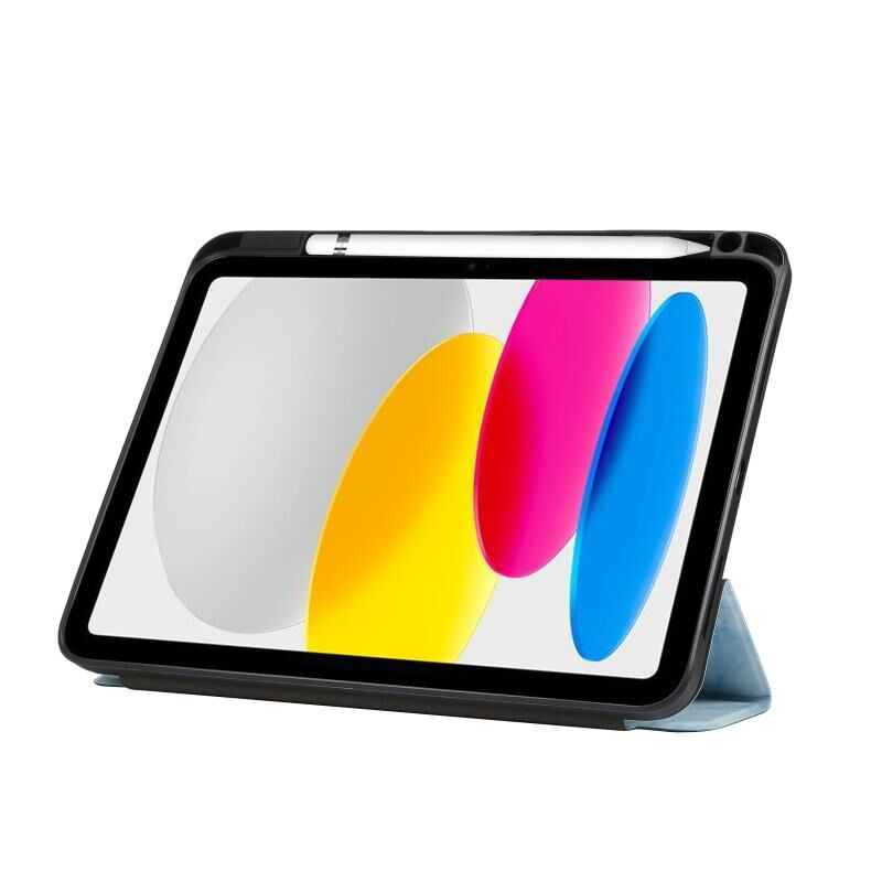 For iPad 2025 / 2022 Three-fold Marble Texture Protective Tablet Case with Pen Slot(Blue)