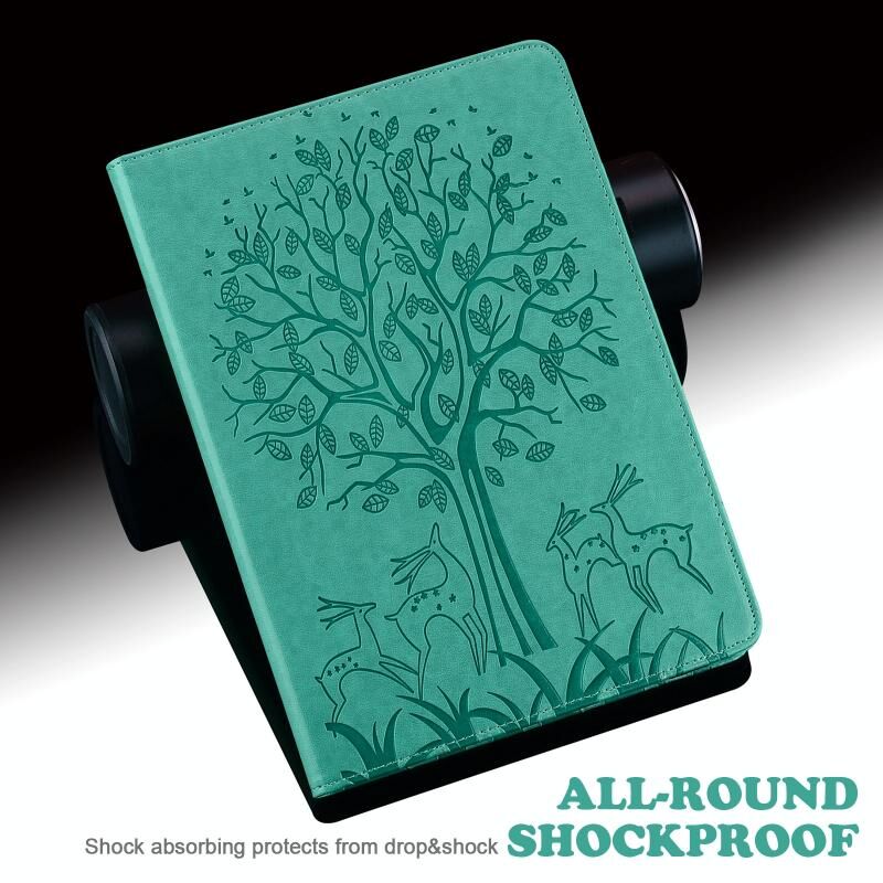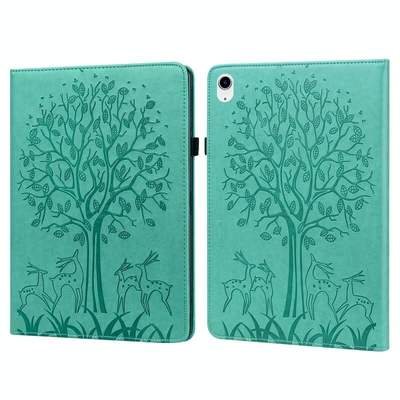 For iPad 2025 / 2022 Tree & Deer Embossed Leather Tablet Case(Green)