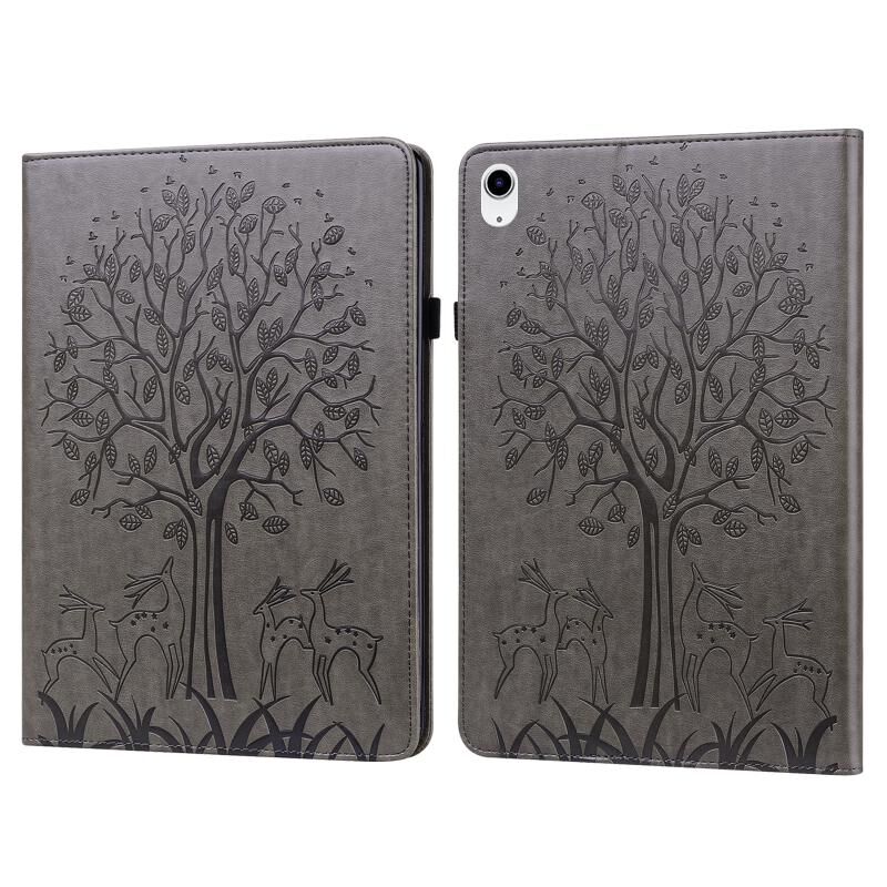 For iPad 2025 / 2022 Tree & Deer Embossed Leather Tablet Case(Grey)