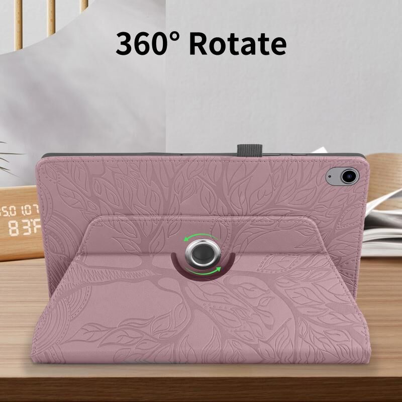 For iPad 2025 / 2022 Tree Life Embossed Rotation Leather Smart Tablet Case(Rose Gold)