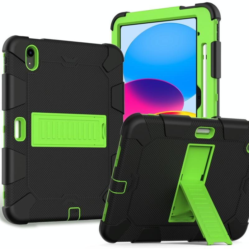 For iPad 2025 / 2022 Two-Color Robot Shockproof Silicone + PC Protective Tablet Case(Black + Yellow Green)