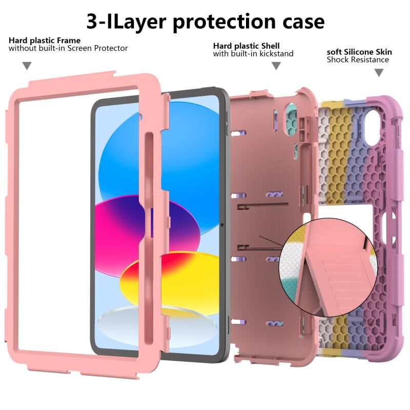 For iPad 2025 / 2022 Two-Color Robot Shockproof Silicone + PC Protective Tablet Case(Colorful + Rose Gold)