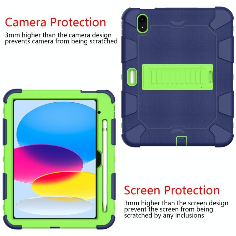 For iPad 2025 / 2022 Two-Color Robot Shockproof Silicone + PC Protective Tablet Case(Navy Blue + Yellow Green)
