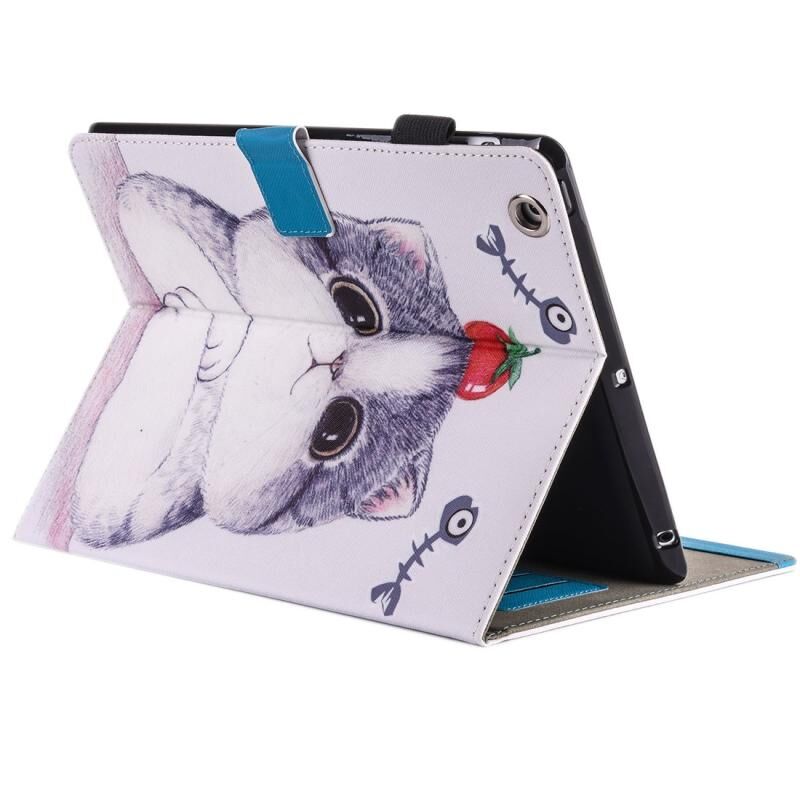 Θήκη δέρματος οριζόντιας αναδίπλωσης με σχέδιο ντομάτας και γάτας για iPad 4 / 3 / 2, με βάση, πορτοφόλι, θήκες καρτών και θήκη στυλό.
