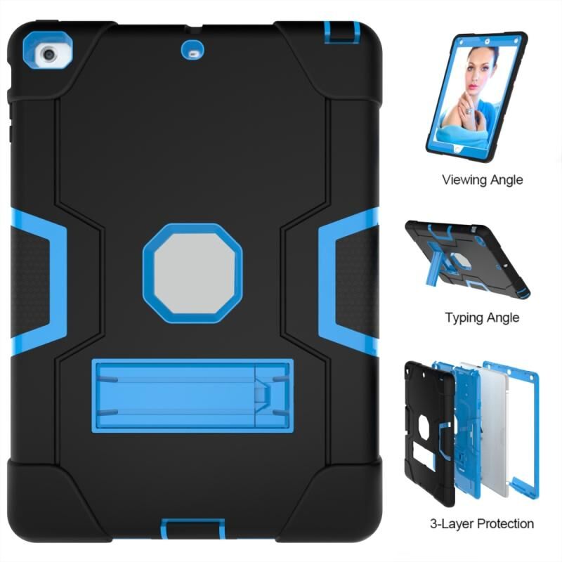 Θήκη Προστασίας για iPad 4 / 3 / 2 από Σιλικόνη + PC με Στήριξη (Μαύρο + Μπλε)
