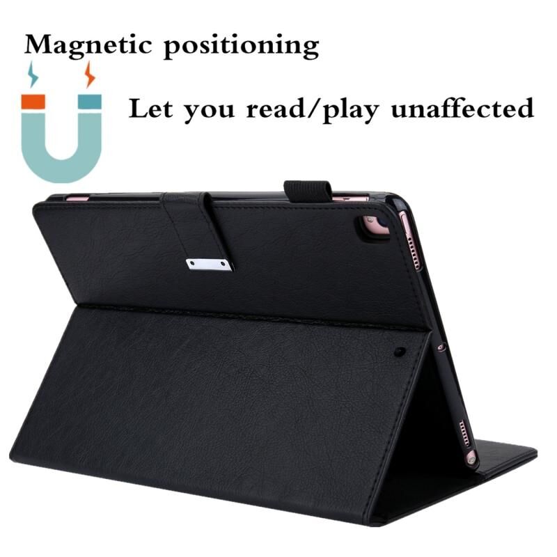 Θήκη δέρματος οριζόντιας αναδίπλωσης στυλ business για iPad 5 / 6 / 7 / 8 / 9 με βάση & υποδοχή κάρτας & κορνίζα φωτογραφίας & πορτοφόλι & λουρί χειρός & λειτουργία ύπνου / αφύπνισης (Μαύρο)