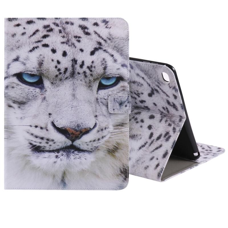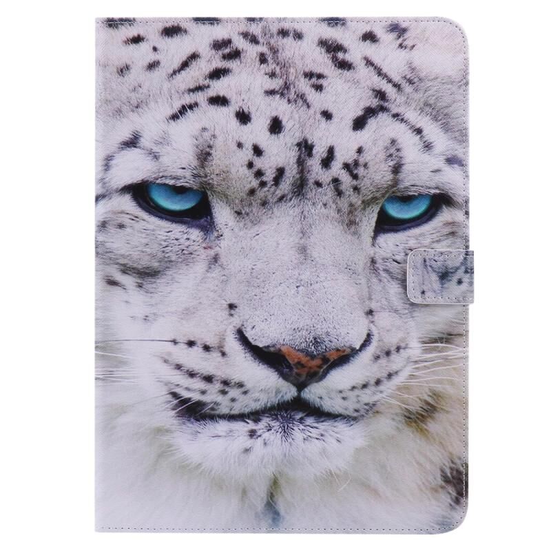 Θήκη για iPad 5 & 6 με έγχρωμο σχέδιο, οριζόντια αναδίπλωση από δερματίνη PU με βάση στήριξης & θήκες για κάρτες & πορτοφόλι & λειτουργία αυτόματης αφύπνισης/ύπνου (Λευκή Πανθήρα)