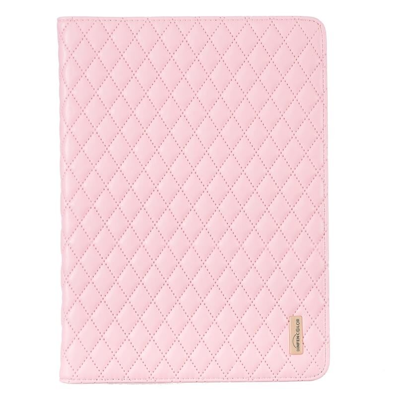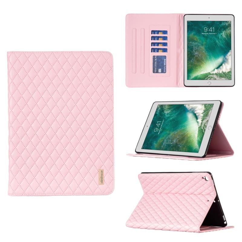 Θήκη δερμάτινη οριζόντιας αναδίπλωσης για iPad 8 / 7 / 6 / 5 9,7 ιντσών με κομψό ανάγλυφο ρόμβου (Ροζ)