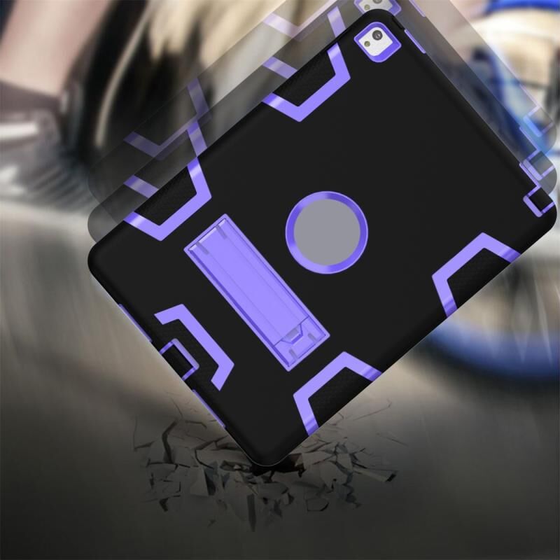 Θήκη προστασίας για iPad 9.7 (2017) αντικραδασμική από PC + σιλικόνη, με βάση στήριξης (Ναυτικό Μπλε Ρόζ).