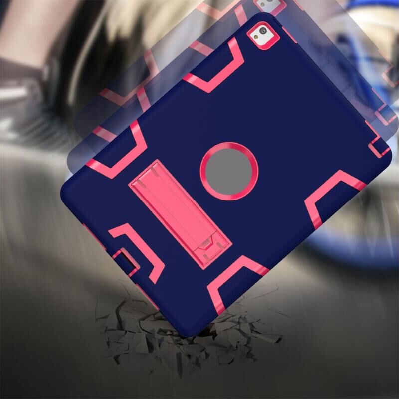 Θήκη προστασίας για iPad 9.7 (2017) αντικραδασμική από PC + σιλικόνη, με βάση στήριξης (Ναυτικό Μπλε Ρόζ).