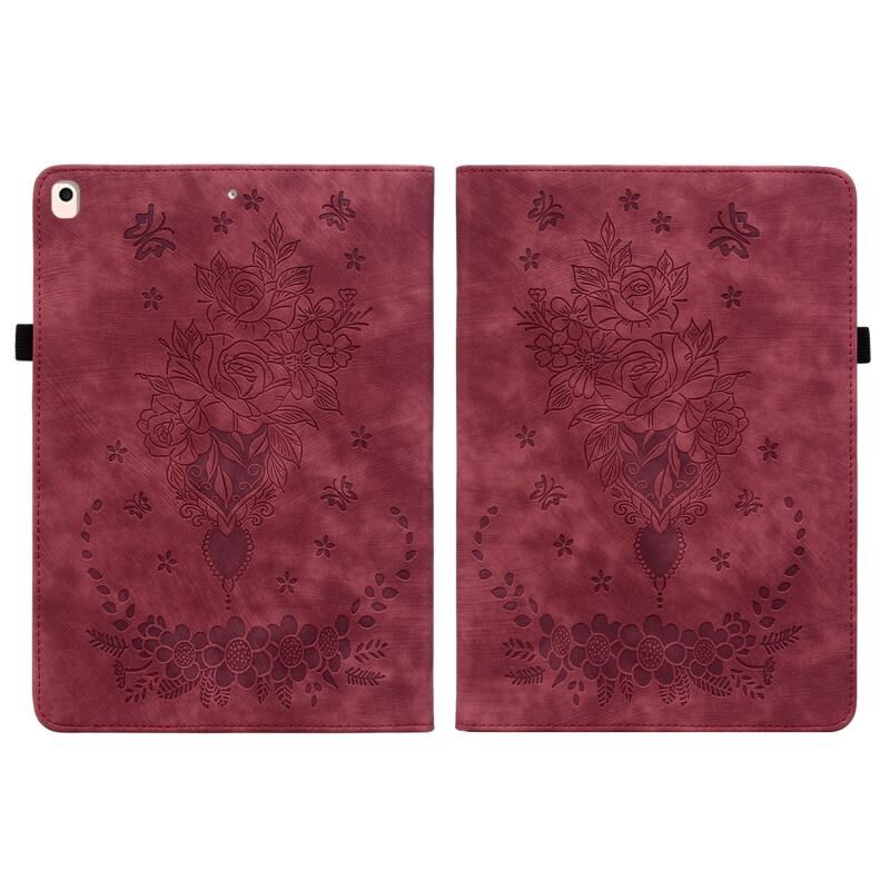 For iPad 9.7 2018 / 2017 / Air / Air 2 Butterfly Rose Embossed Leather Smart Tablet Case(Red)