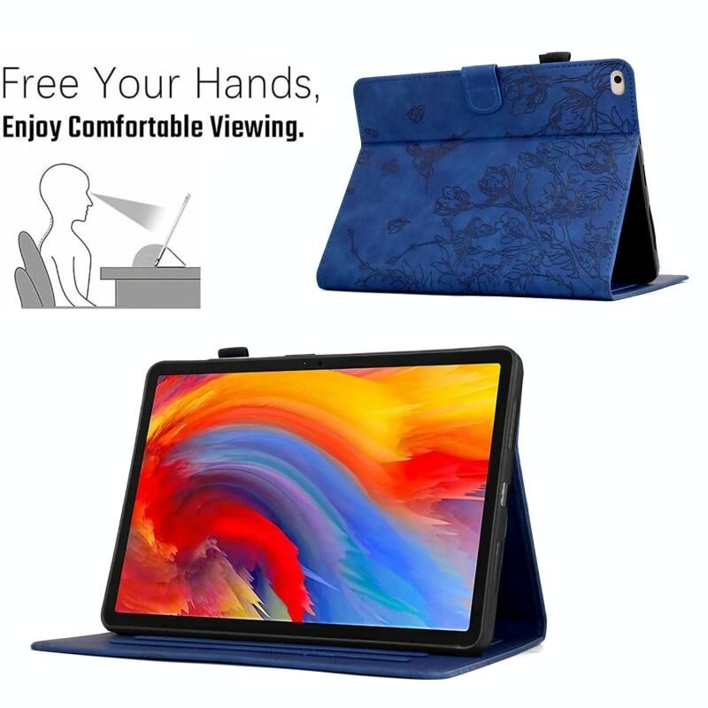 For iPad 9.7 2018 / 2017 Flowers and Bird Embossed Smart Leather Tablet Case(Dark Blue)