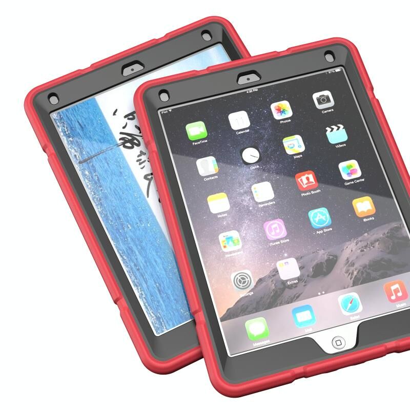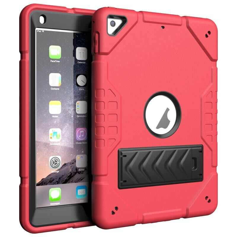 For iPad 9.7 2018 / Air / Air 2 Armor Holder Silicone Hybrid PC Tablet Case(Red Black)