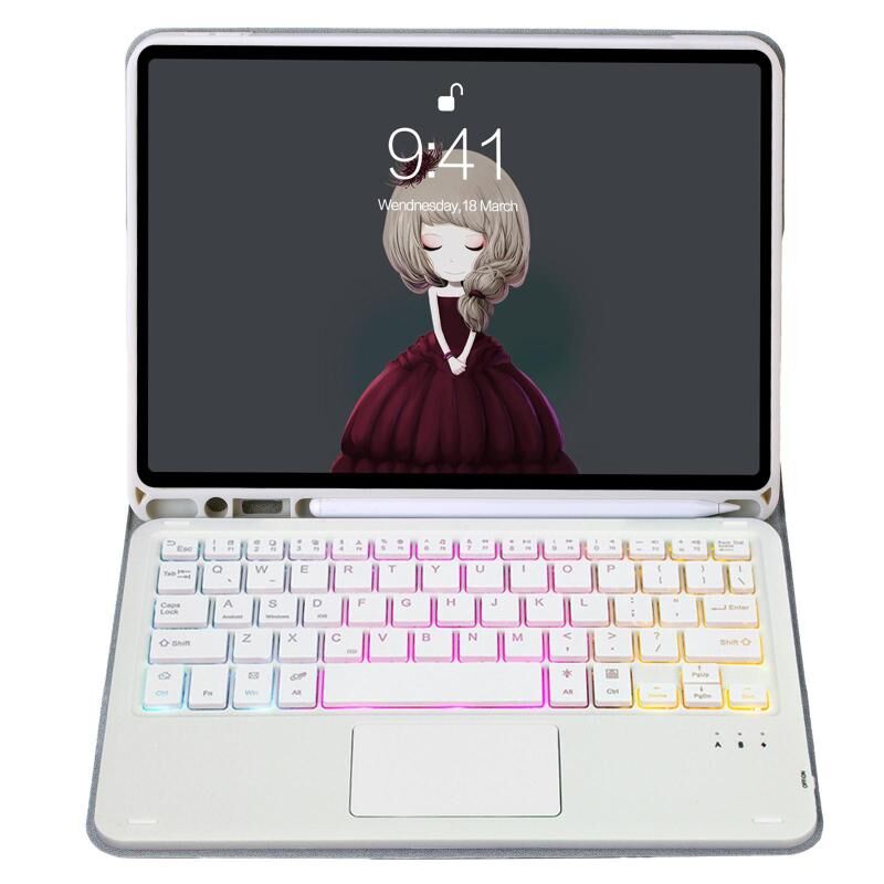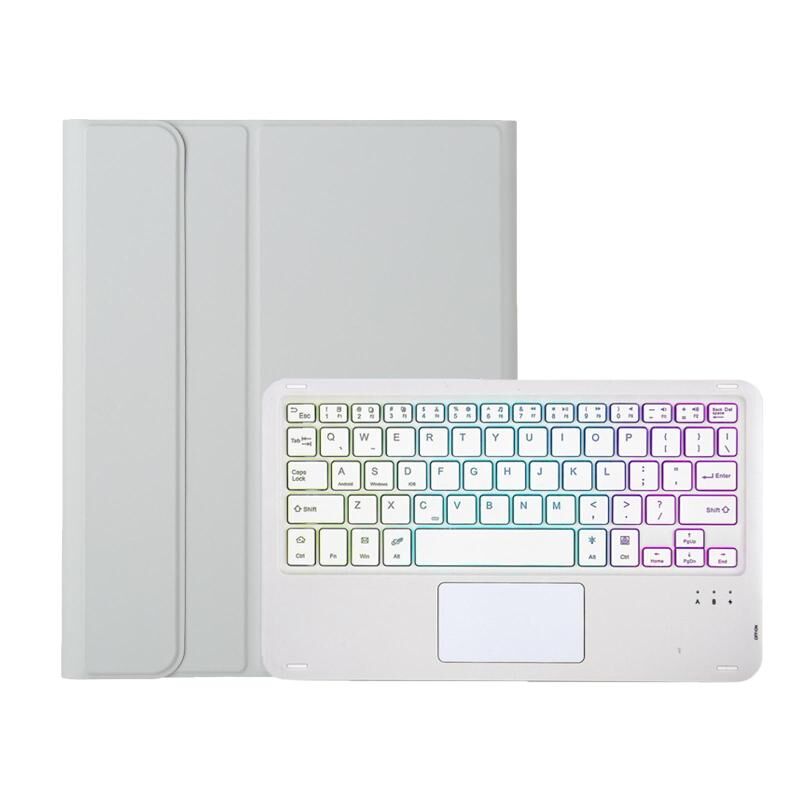 For iPad 9.7 2018&2017 / Pro 9.7 / Air 2 Lambskin Pen Slot Touch Pad Backlight Bluetooth Keyboard Leather Tablet Case(Grey)