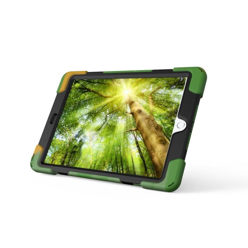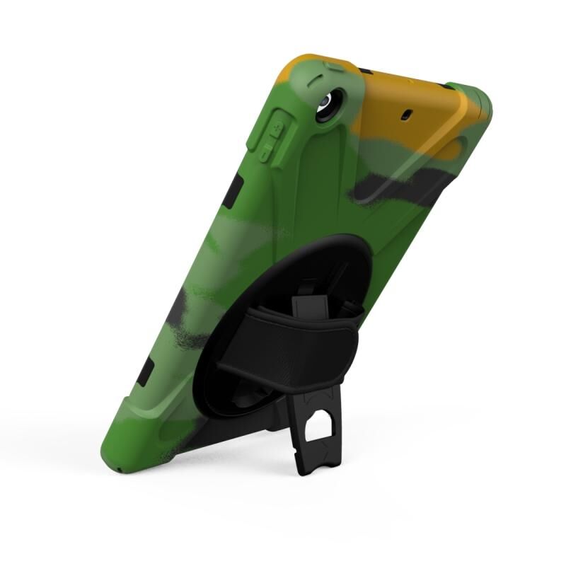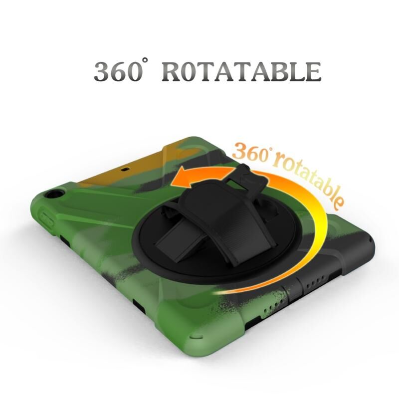Για iPad 9.7 (2018) & iPad 9.7 (2017) Προστατευτική θήκη περιστροφής 360 μοιρών από PC + σιλικόνη με βάση & λουρί χειρός (Καμουφλάζ Πράσινο)