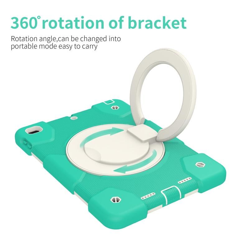 Θήκη tablet για iPad 9.7 2018 από σιλικόνη + PC, πλήρης προστασία σώματος, με βάση στήριξης & λουρί (Σκούρο Πράσινο)
