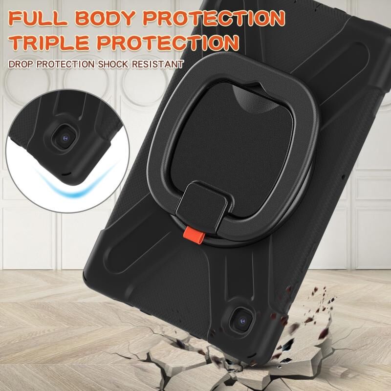 For iPad 9.7 inch (2018/2017) Silicone + PC Protective Case with Holder & Shoulder Strap(Black+Black)